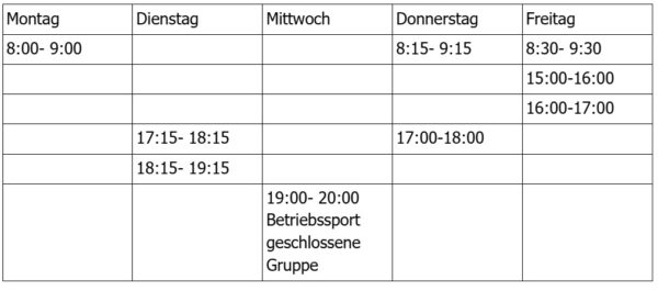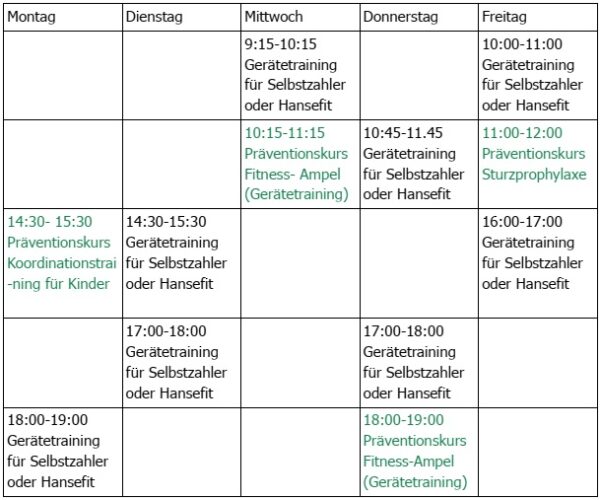 Präventionskurse und Gerätetrainingszeiten (immer unter Anleitung)